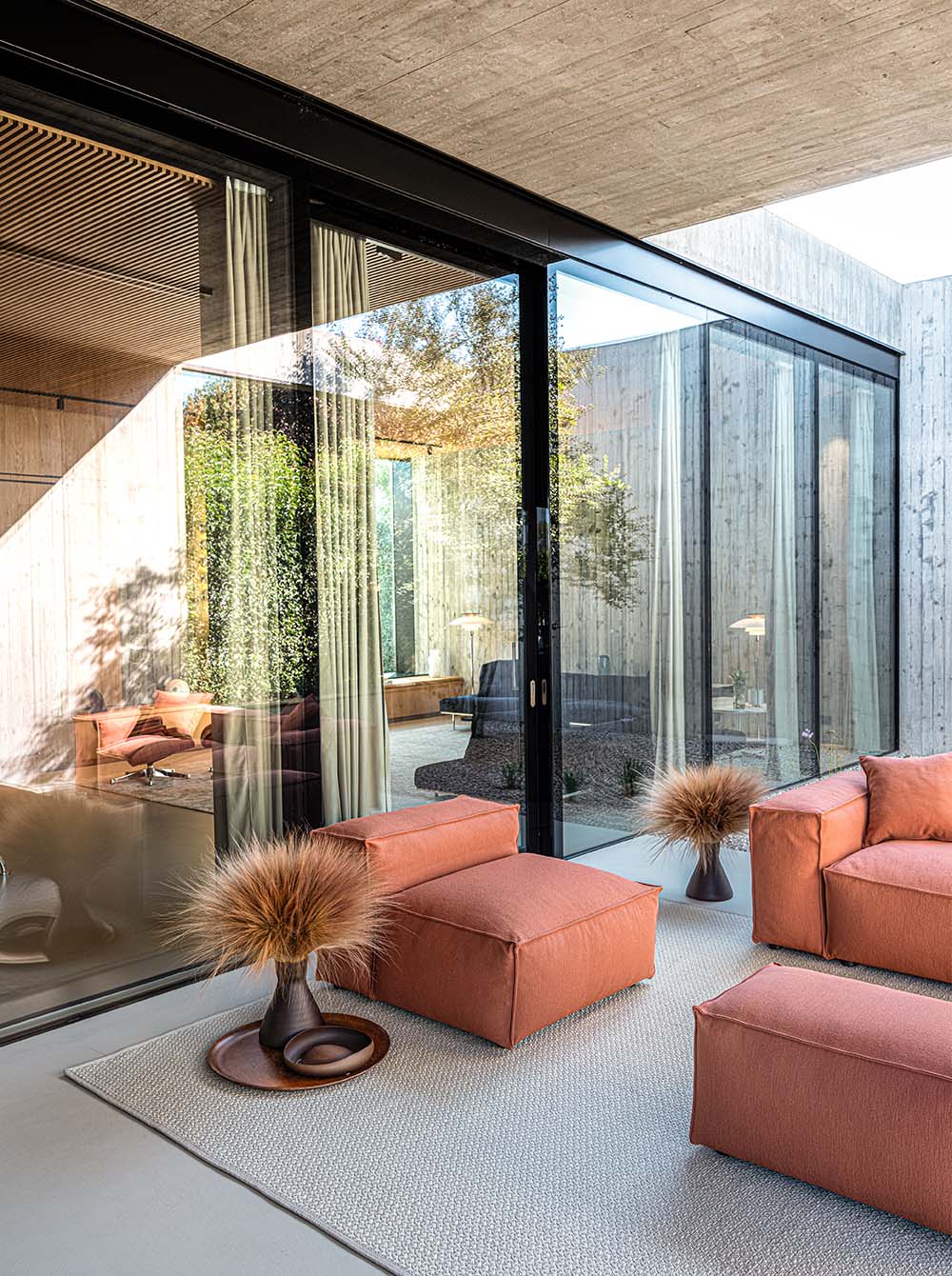 counts each with distinct processing, skilfully interwoven and double-weaved to create a striking relief texture reminiscent of yacht rigging. Extremely high-performance, washable and versatile – excellent for both outdoor and indoor environments.