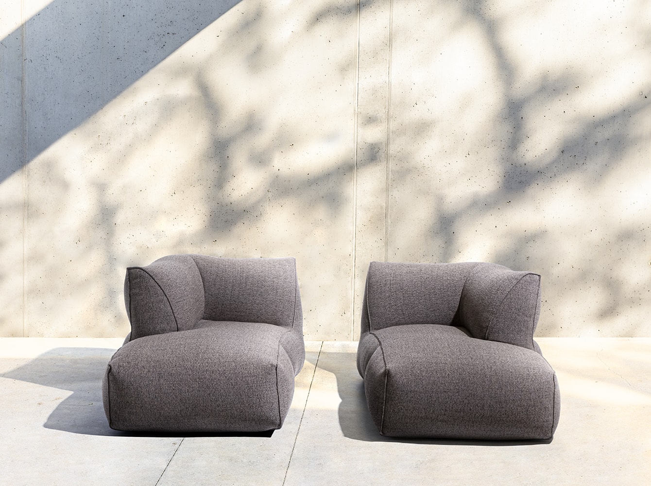 Offering every comfort, welcoming in the embrace of full, supple and graceful forms. This is the hallmark of the armchairs, sofas, chaise longues and poufs of the Puffone line. Exclusive fabrics envelop soft complexes, without structure or rigidity, perfect for both inside and outside the home.